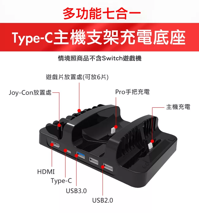 博客來 任天堂nintendo Switch 多功能七合一type C影音輸出充電支架